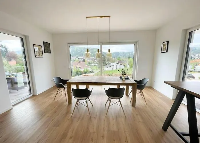 Villan med 2 badrum ligger inom 45 km från Zweibrucken flygplats och relativt nära kulturella sevärdheter som Deutsches Schuhmuseum. På boendet bor du ungefär 25 minuter till fots från Ruine Falkenburg och inom 30 minuters bilresa från Zweibrücken. Villan ligger inom 3 km från Huhnerstein.